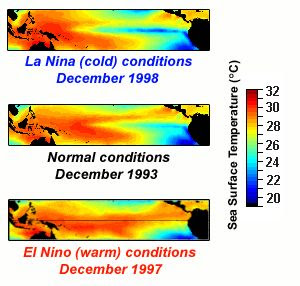 Maps Showing Sea Surface Temperature During Normal El Nino And La Nina Conditions El Nino Brings Warmer Sea Geography Activities Weather Patterns Activities